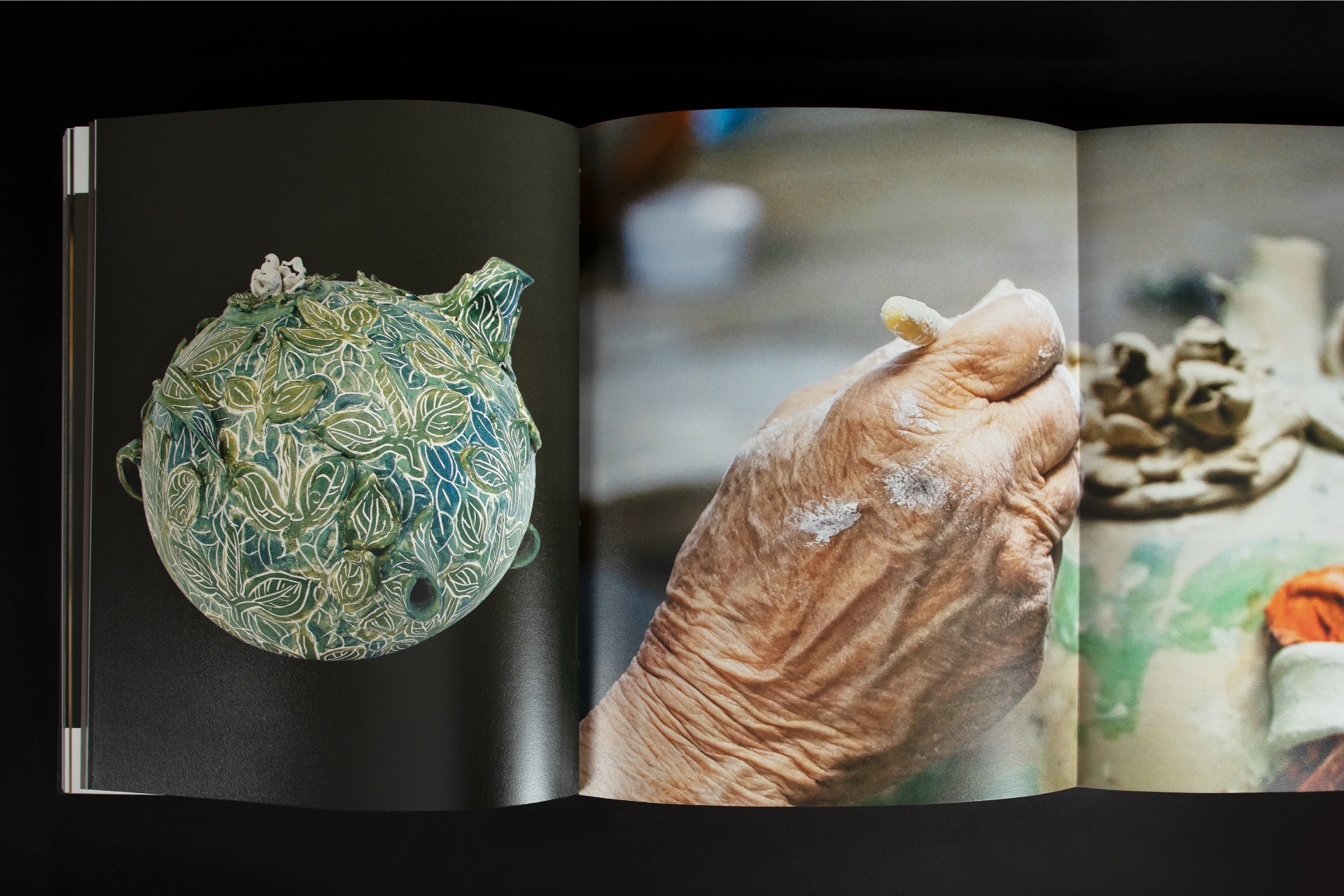 Her signature on the front page starts the story. Her essay, ‘Pottery and I’ is interspersed with close-up images of her work, giving the reader a taste for what follows. Snippets from ‘Pottery and I’ and other essays dot the book, enhancing the viewing experience for the reader.