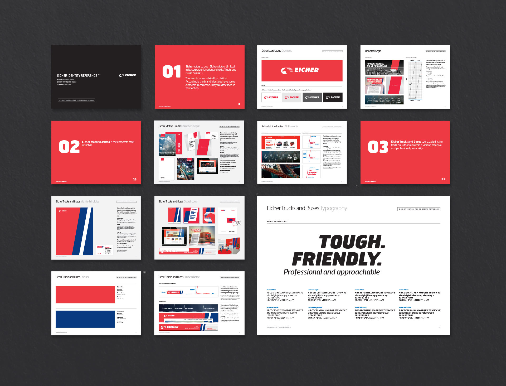 ETB (Eicher Trucks & Buses) was created on a two-colour palette & a system wide geometry using oblique elements that gives the brand a pacey and rugged character also infusing speed and energy into the identity.