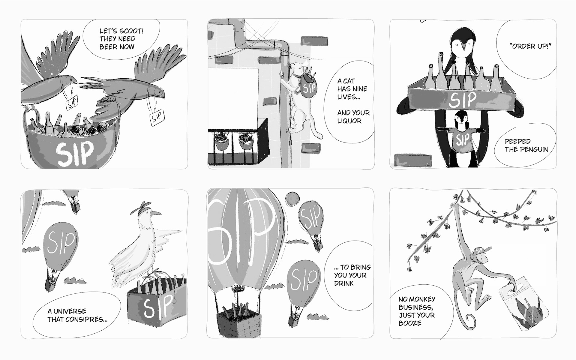 Creating a universe for Sip, one where Alcohol is not treated as a sober subject was an approach that looked promising.