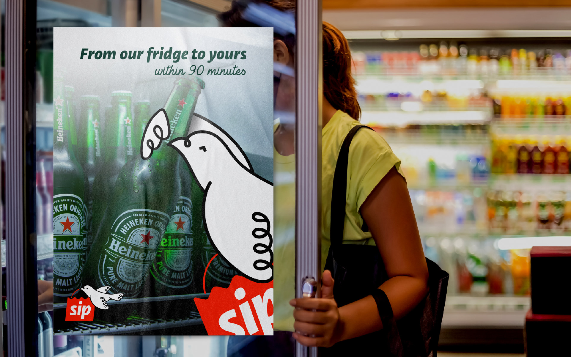 A host of promotional creatives for the launch were developed with the Sip bird at the centre of the story, to help establish it in the customer’s mind.