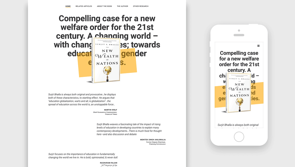 Dr. Surjit S. Bhalla is an economist and author of multiple books. He has taught, as well worked at several well-known institutions and continues to play a notable role in shaping India’s economic policies. Being such a prominent member in his field he needed a personal website which would act as an archive for all his work over the past 45 years as well as give a platform to post updates about his latest books, talks and other publications.