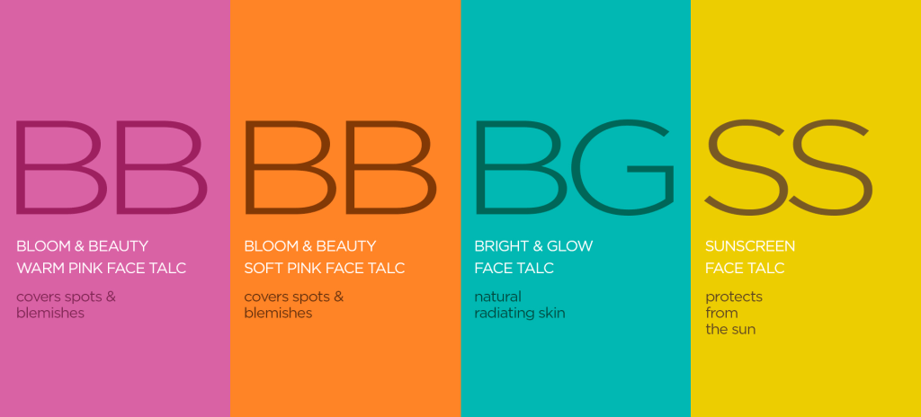 This made the variants distinguishable, explained their functions and clarified to consumers to think of them as more than just generic talcum powders.
