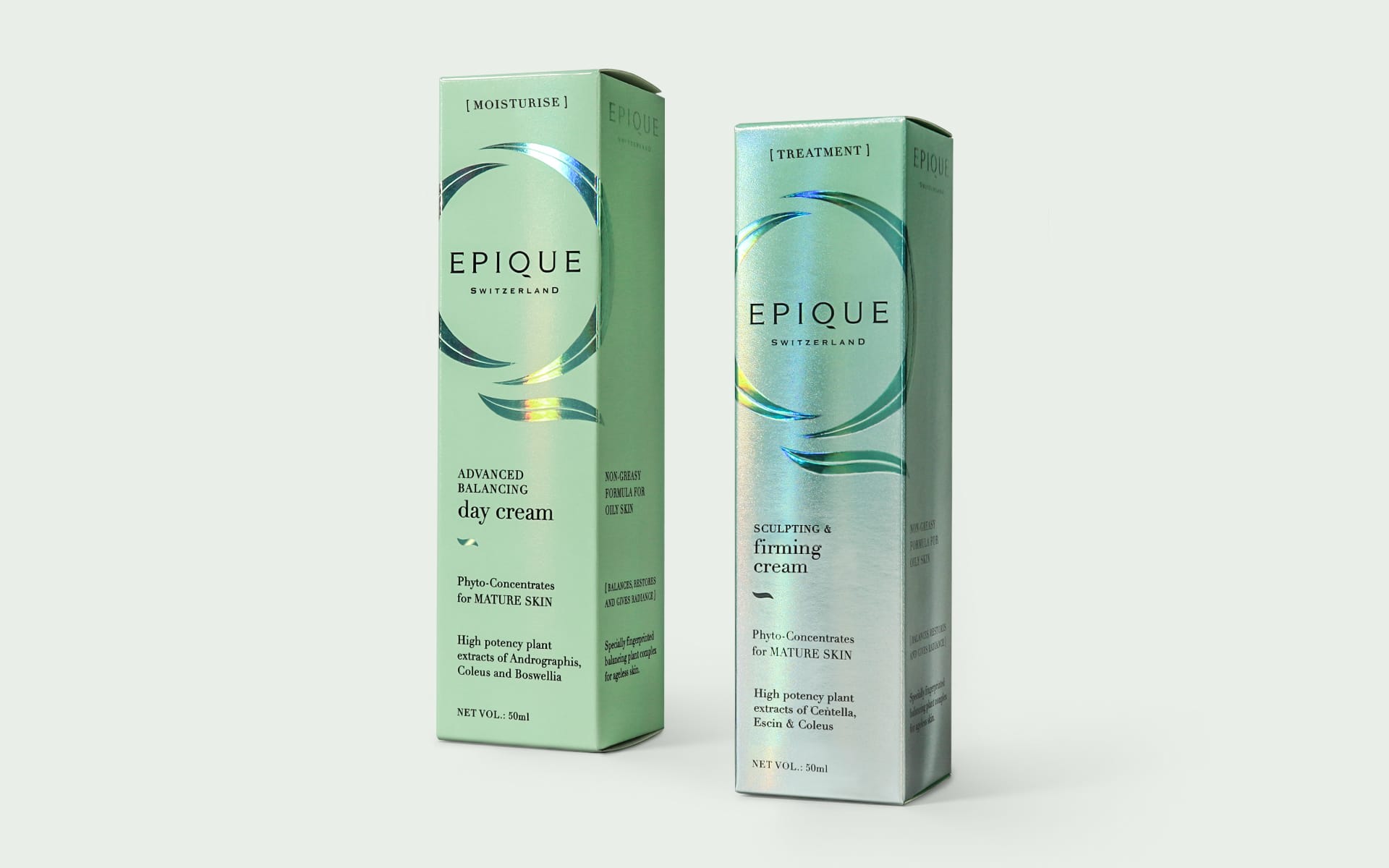 Epique is a line of exclusive skincare products built on the superior quality of its plant extracts, a strength derived from its parent’s 75 year heritage. Seeking a more luxury position, it approached us to redesign its packaging.