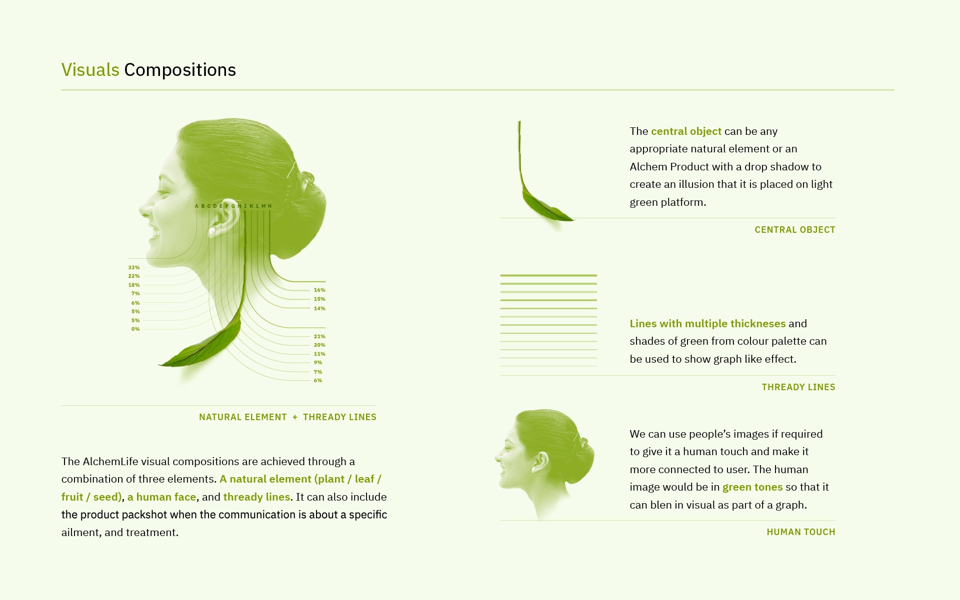Set in a green landscape of plants, fruits and leaves are linear drawings suggestive of the science and technology underlying these phytochemicals. They bring out the beautiful and powerful duality in its products.