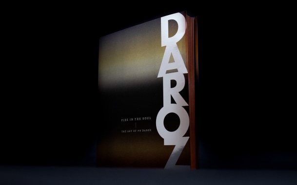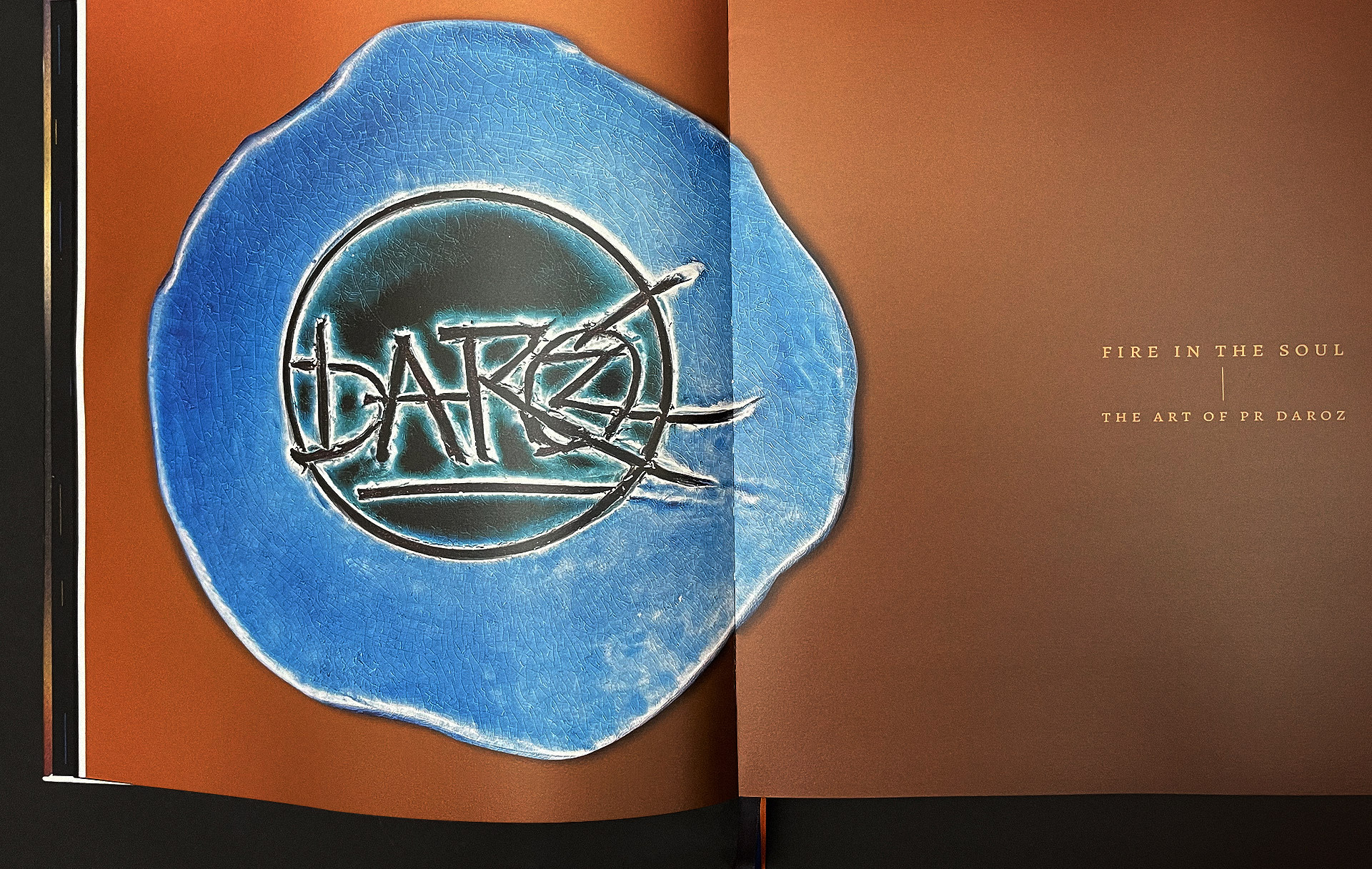 Daroz’s quotations and observations on the materials, the art form and his own work is captured in snippets that dot the book and marked with his signature symbol—it is here that the artist speaks to the reader directly.